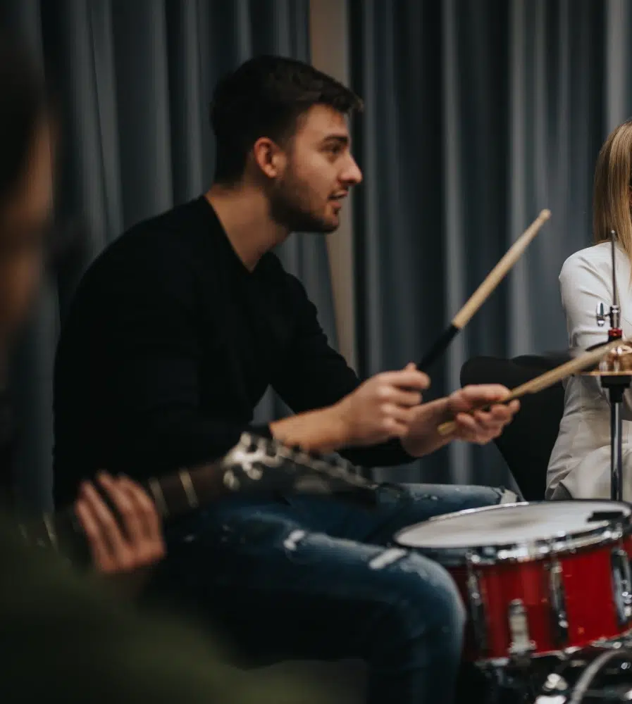 Les exercices variés alternent travail individuel, jeux rythmiques et pratique en ensemble, créant une ambiance stimulante et encourageante. Que vous soyez débutant ou déjà batteur confirmé, les cours collectifs offrent une expérience musicale riche, où l’on apprend autant de soi que des autres, dans un esprit de partage et de plaisir.